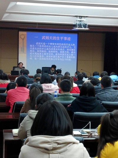 在讲座中,王双怀教授旁征博引、融贯古今,向大家呈现了中国历史上唯一的女皇风采,肯定了武则天时期所取得的历史功绩,澄清了历史事实,让大家对武则天有了重新的认识和评价。整场讲座气氛热烈、互动频繁,让学院师生享受了一次文化大餐。