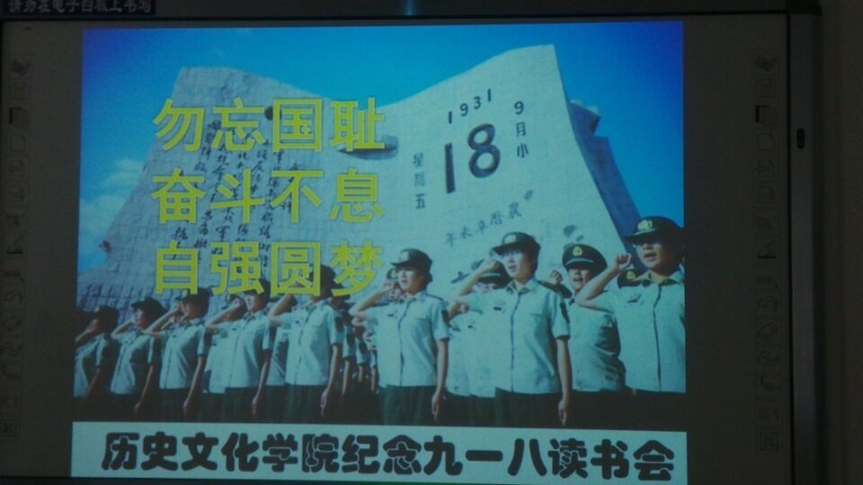 活动由三个部分组成,首先是“纪念九一八读书会”与“抗战故事会”活动,此举意在鼓励同学们多读书,多读与现实生活联系紧密的书,由读书来感受自己的专业特色与魅力。故事会是要请同学们把自己读书的内容分享给周围的同学,一方面帮助同学们尽快互相了解与认识,另一方面要同学们互相团结起来,形成正确的世界观、人生观和价值观。