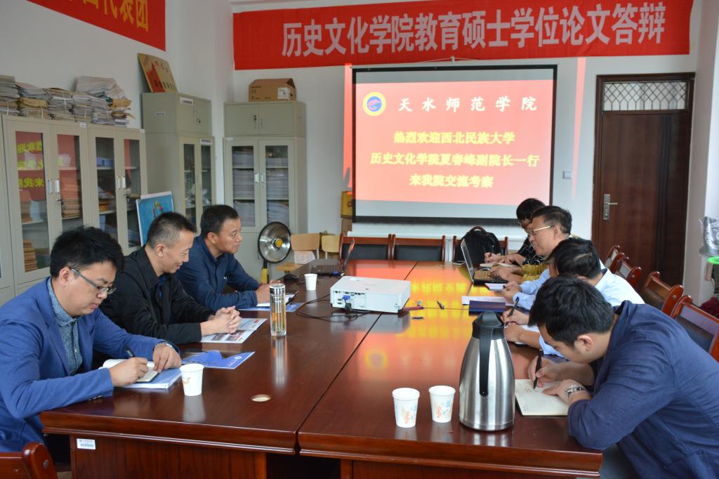 座谈会上,陈于柱副院长首先介绍了我院专业建设、学科建设、实验室建设、师资力量、科研力量等情况,孙书记就学生管理、学生就业情况等进行了详细介绍。夏春峰副院长对西北民族大学历史文化学院办学历史、专业和学科建设进行详细介绍,并对我院近年来在学科建设等方面取得的成绩表示祝贺,对我院的人才培养质量进行了充分肯定,并希望我院学生能积极报考西北民族大学历史文化学院研究生。