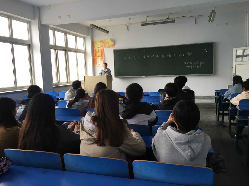 为了提高学生考研积极性,激励同学们努力学习、励志成才,我院于2018年5月10日16:00在2号教学楼504教室召开了2018届毕业生考研经验交流会。本次交流会由历史系主任贾迎亮主持,辅导员郑霞及各年级准备考研学生参加。