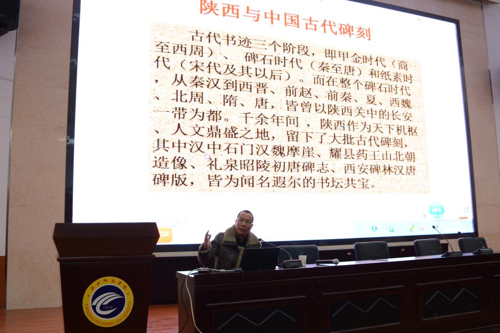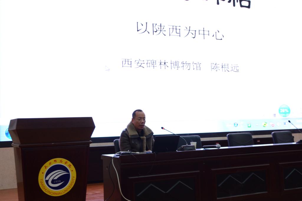 2018年11月17日上午9点,西安碑林博物馆研究院陈根远研究员受我院邀请在2号报告厅作了题为《碑林与碑帖——以西安碑林为中心》的专题学术讲座。本场讲座由77779193永利集团副院长赵世明主持,77779193永利集团刘雁翔教授、晏波副教授、强文学副教授、李贺文老师、韩蓓蓓老师出席讲座,77779193永利集团15级文博班、16级文博班、17级和18级全体同学参加此次讲座共计近300人参加本次讲座。