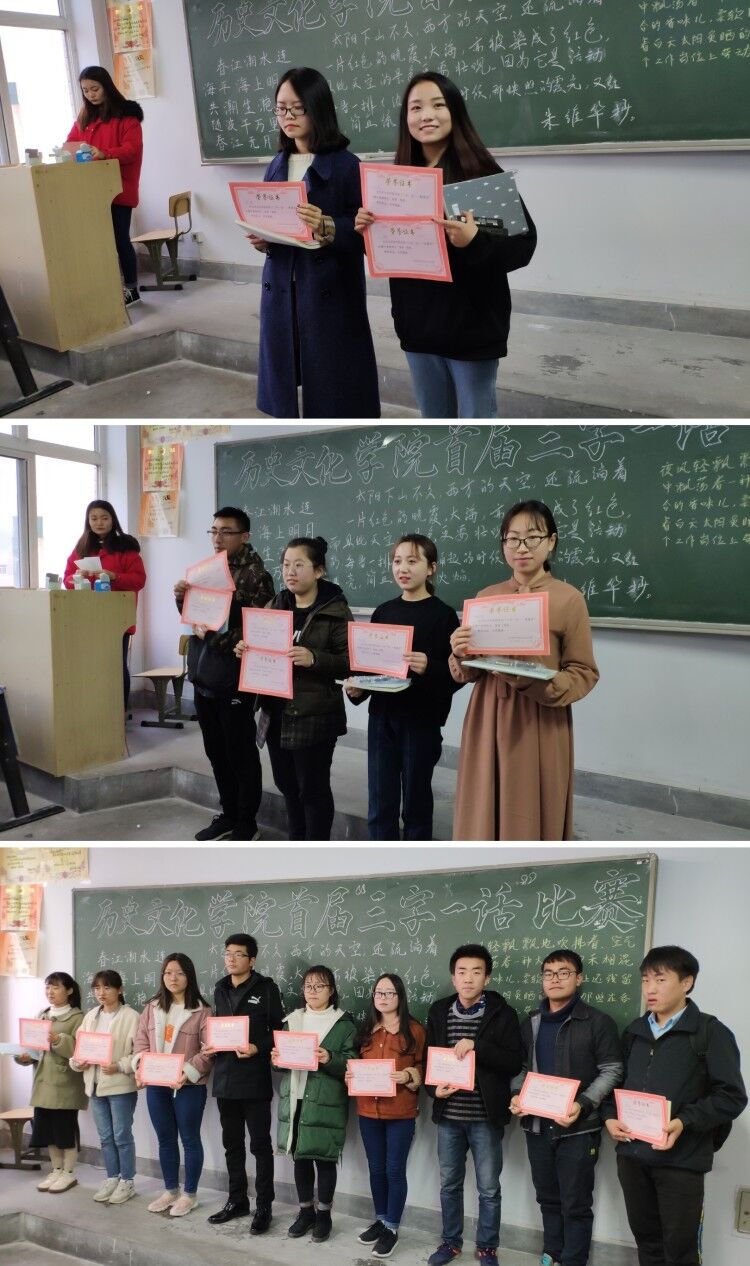 毛笔字比赛结束后接着举行了粉笔字和普通话的比赛。参赛选手自信、大方,在讲台上尽情展示自我。