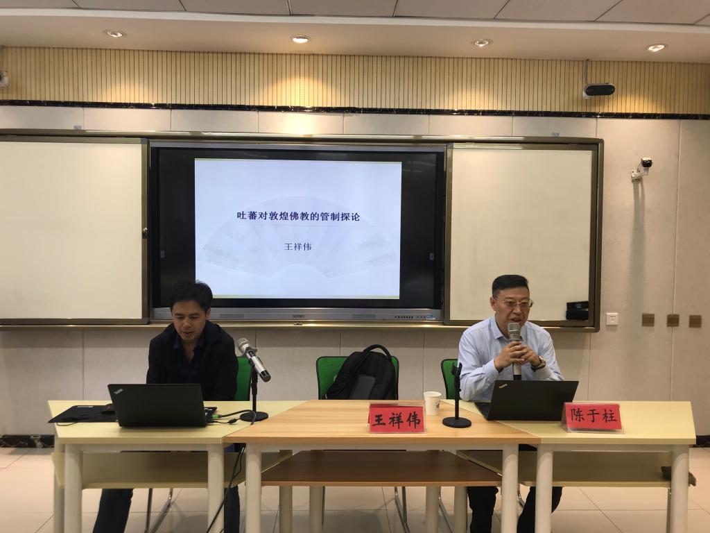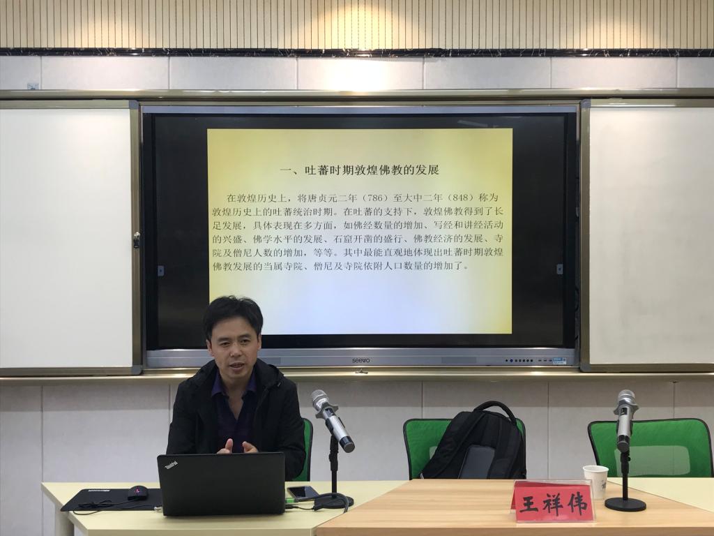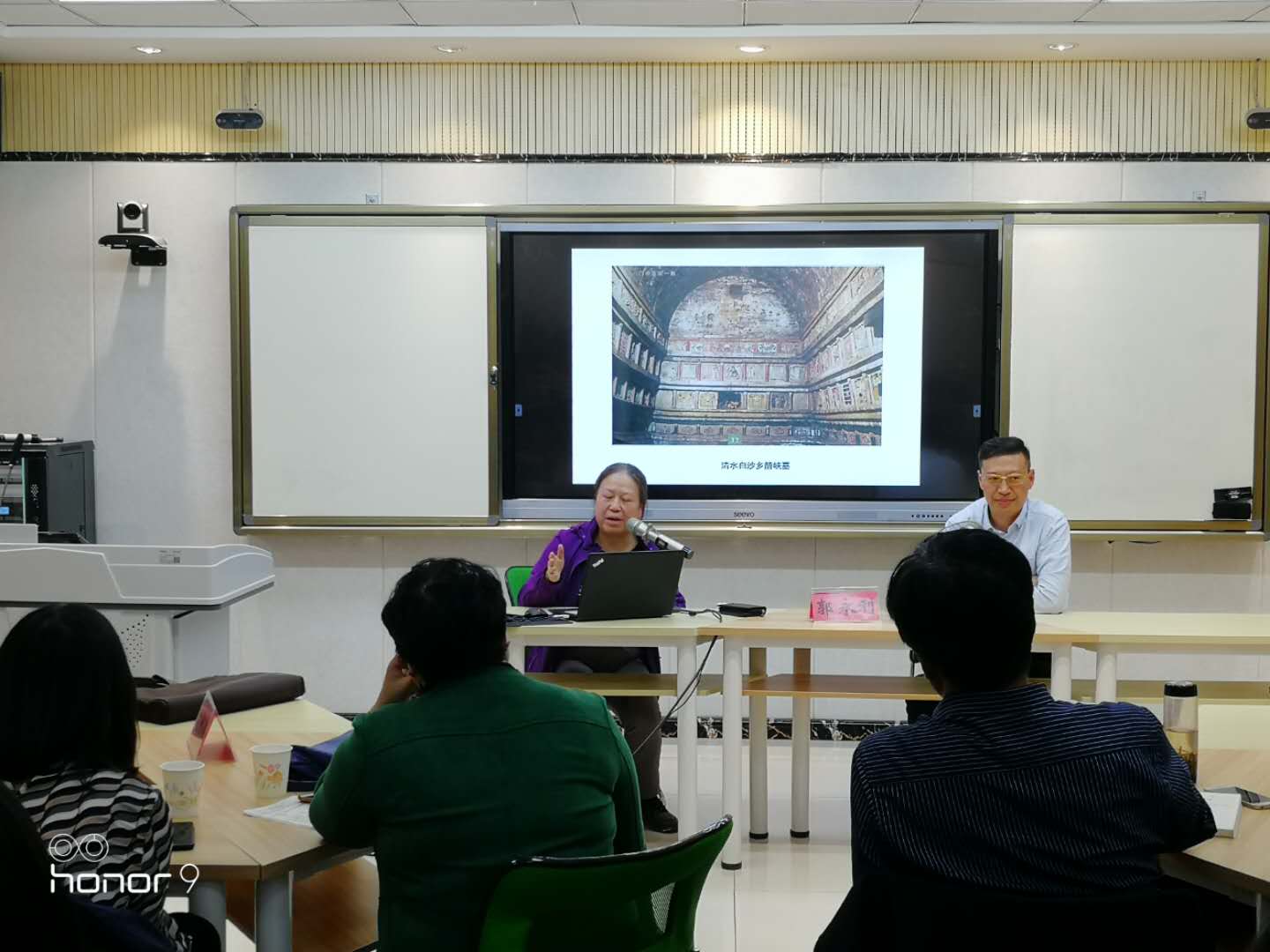 王祥伟教授对吐蕃对敦煌佛教的管制提出了新的观点,着力从吐蕃时期敦煌佛教的发展、吐蕃对敦煌佛教的管制、控制寺院经济等方面作了细致的讲解,并例举了大量汉、藏文珍贵史料。郭永利博士展示了大量的考古新发现,如静宁新出元代壁画墓,陇西、会宁、兰州等地的壁画墓等,并详细梳理出对墓室壁画断代的若干标准,极大地开拓了在座师生的学术视野。讲座期间,各位评议人、与谈人就讲座内容与报告人进行了充分沟通和热烈讨论,有力推进了对相关学术前沿观点的认识。
