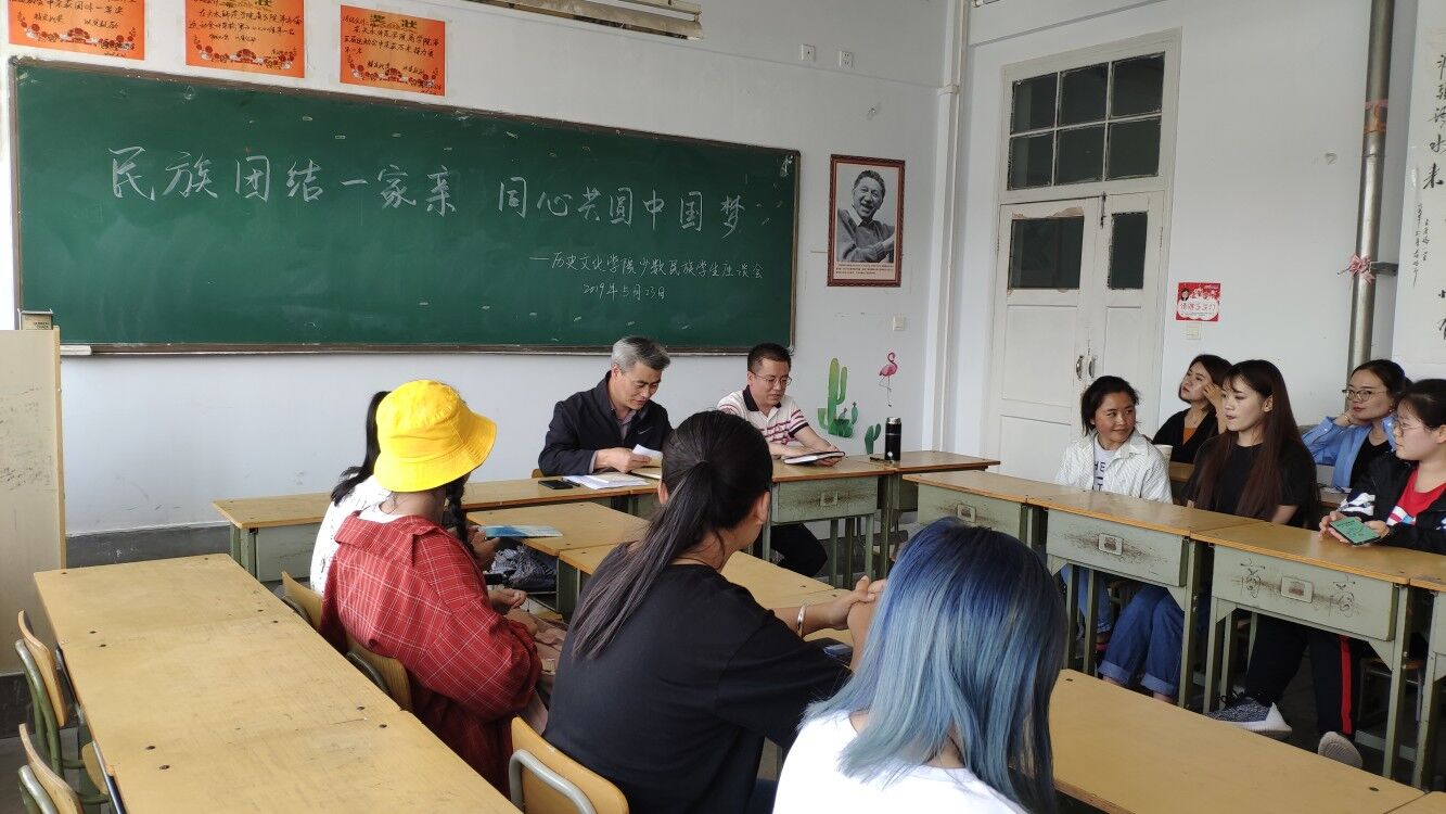 2019年5月23日下午3:30,77779193永利集团于二教517教室举办了以“民族团结一家亲,同心共圆中国梦”为主题的少数民族学生座谈会,学院直属党支部书记吴江峰、副院长赵世明,辅导员郑霞、龚若琪、朱晓凤以及学院20余名少数民族学生参加本次座谈会,座谈会由副院长赵世明主持。