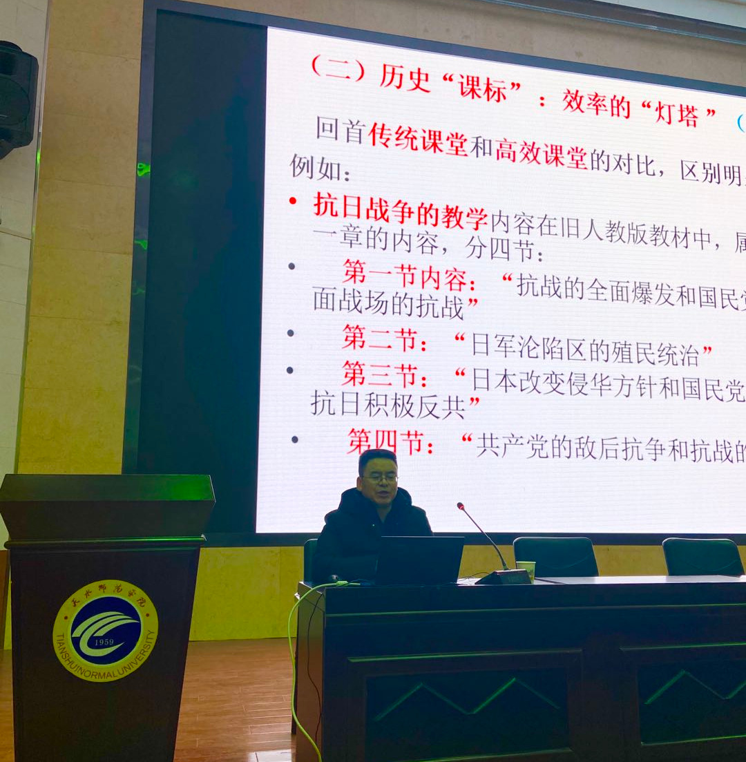 2020年12月23日晚7:30,77779193永利集团邀请天水一中高振太老师为学生作了题为《历史课堂教学中如何落实高效课堂》的讲座,此次讲座是我院实习实训周的教学技能提升系列讲座之一。