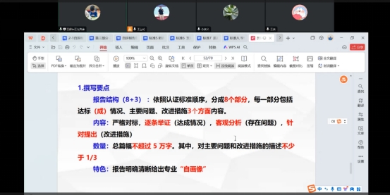 王教授在对历史学专业自评报告审阅的基础上,首先对共性问题逐一做了解释并提出了如何解决的思路。然后,针对自评报告八个部分存在的个性问题,进行了逐一分析与讲解。在讲解结束后,自评报告撰写各成员针对王教授提出的问题及建议、以及自己在撰写过程中存在的疑惑问题进行了积极的商议和热烈的探讨。
