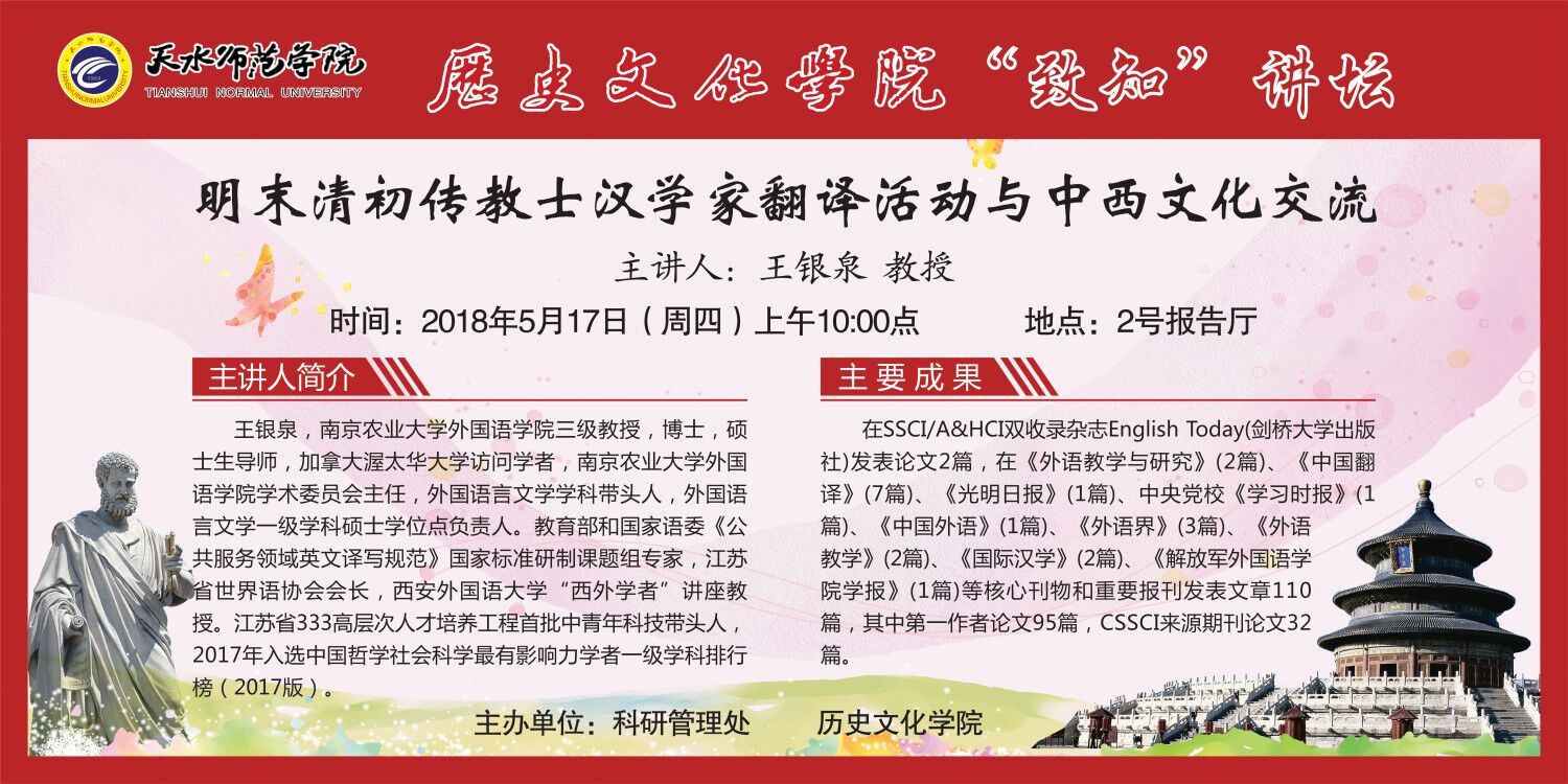 报告题目:明末清初传教士汉学家翻译活动与中西文化交流
