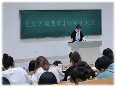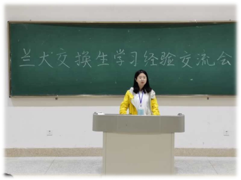 2018级赴兰大交流学生张淑贤首先发言,该同学从学习习惯、学习方法、生活态度等方面,详细介绍了自己在兰大学习、生活期间的所见、所感、所想,鼓励同学们要学会独立学习、自我规划、端正态度,要有独立思考和综合发展的意识,给大家以深刻的印象。梁云云同学分学习篇、校园文化篇、生活篇、友谊篇等四个部分,详细介绍了自己在兰大历史文化学院交流学习一年的方方面面情况,使同学们懂得了如何规划自己、如何坚持憧憬、如何勤奋愉快的学习。最后,两位同学希望大家能够发奋图强,实现自己的理想,并且表达了学校给予他们此次交流学习机会的感谢。