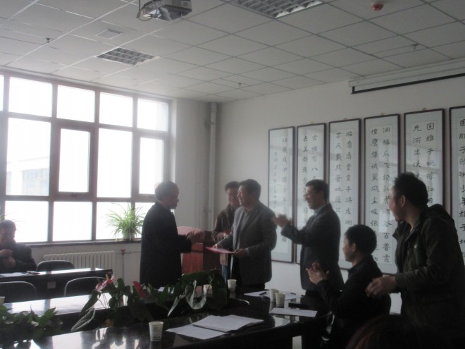 会上,天水一中副校长王建兵对学校的师资及教学情况做了简短介绍,并要求研究生们严格遵守学校的作息时间,认真完成好实习任务。我校联络负责人桑仲刚博士后随后发言,具体介绍了此次研究生们实习的具体目标,内容及要求,提出希望双方紧密合作,完成好此次的教育实践活动。会上,我院刘雁翔教授代表学校向天水一中王建兵、高振太两位教师颁发了教育硕士校外导师聘书。