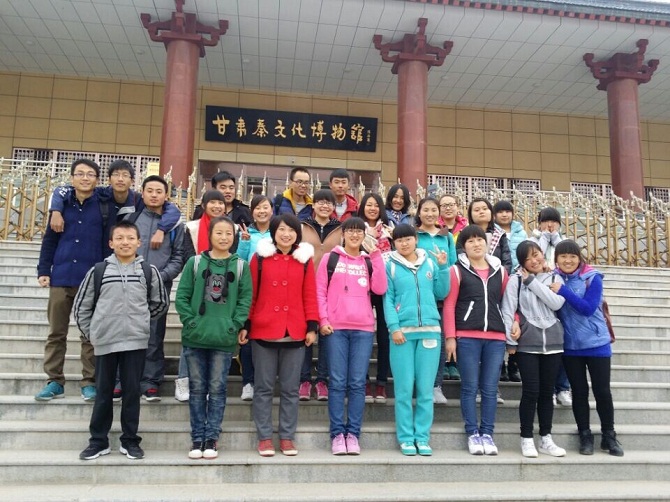 甘肃省秦文化博物馆其主体为仿秦汉式建筑,馆内主要包括“礼县秦文化展”和“礼县历史陈列展”两层展厅,另有“礼县风俗展”和“翰墨遗珍书画展”,丰富的早期秦文化文物向世人展示了早期秦文化的那段动人心魄的辉煌历史。经过讲解员的讲解,2014级文博班全体同学进一步了解了秦文化起源及相关文物。参观完博物馆后,学院班子及专业教师与博物馆各部门负责人就双方开展合作交流、实习基地建设、科学研究等问题进行了有效的沟通和协商。